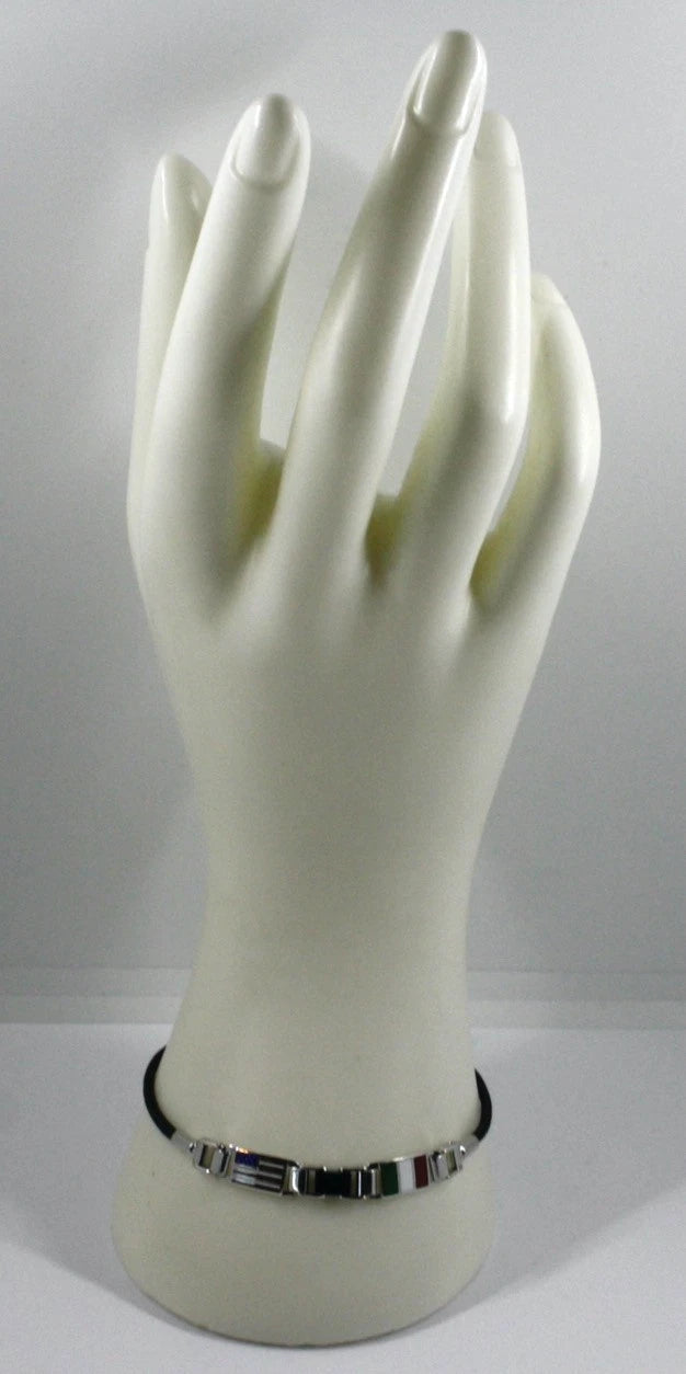 Bracciale Arcadia in argento 925 con bandiera Italia e Usa smaltate a fuoco, spessore 6.5 mm, ceramica nera, lunghezza 20.5 cm, Made in Italy