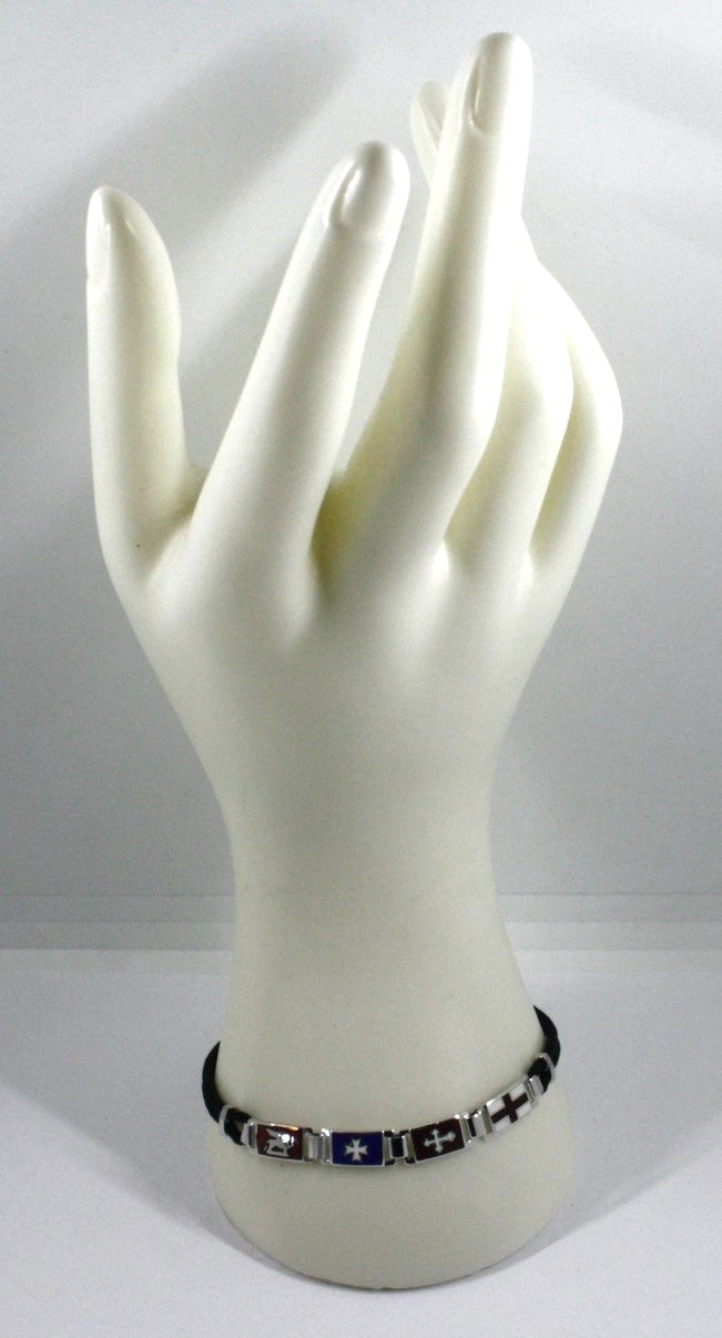 Bracciale Arcadia in argento 925 con bandiere delle Repubbliche Marinare smaltate a fuoco, spessore 6.5 mm e cordino nero in cotone, lunghezza 20.5 cm, Made in Italy