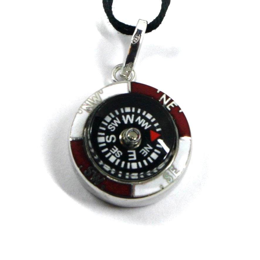 Arcadia Kompassanhänger (17 mm Durchmesser) aus 925er Silber mit Emaille-Verzierung, hergestellt in Italien