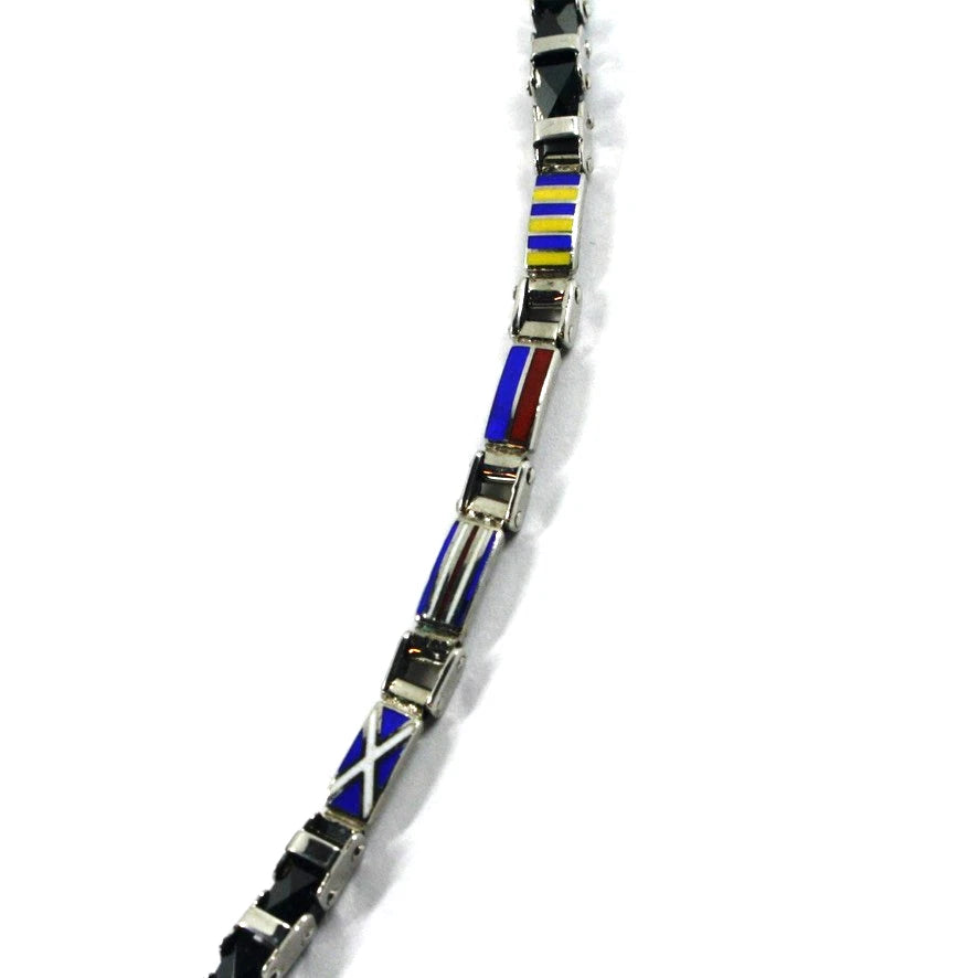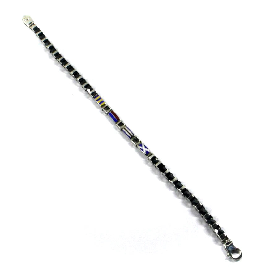 Bracciale Arcadia in argento 925 con bandiere nautiche smaltate a fuoco, spessore 4 mm, ceramica nera, lunghezza 21 cm, Made in Italy