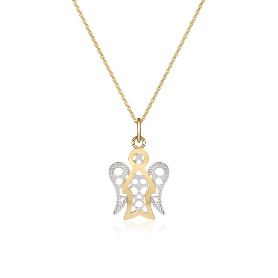 Collana con Angelo Bicolore e corpo traforato in oro 9k.