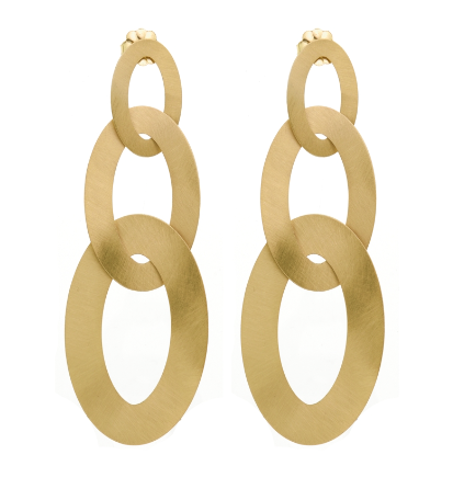 Grandi orecchini pendenti Aquaforte in argento 925, placcati oro giallo, triplo ovale lavorato, 11cm
